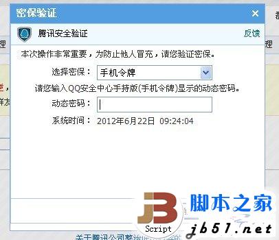 点击“解散本群”后,腾讯会最后一次确认你是否拥有该QQ的所有权,会要求选择一种验证方式,如:输入手机令牌或者密保手机等(如下图)