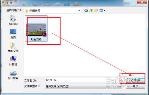 3.选中要播放的视频文件,然后点击打开按钮,如图所示: