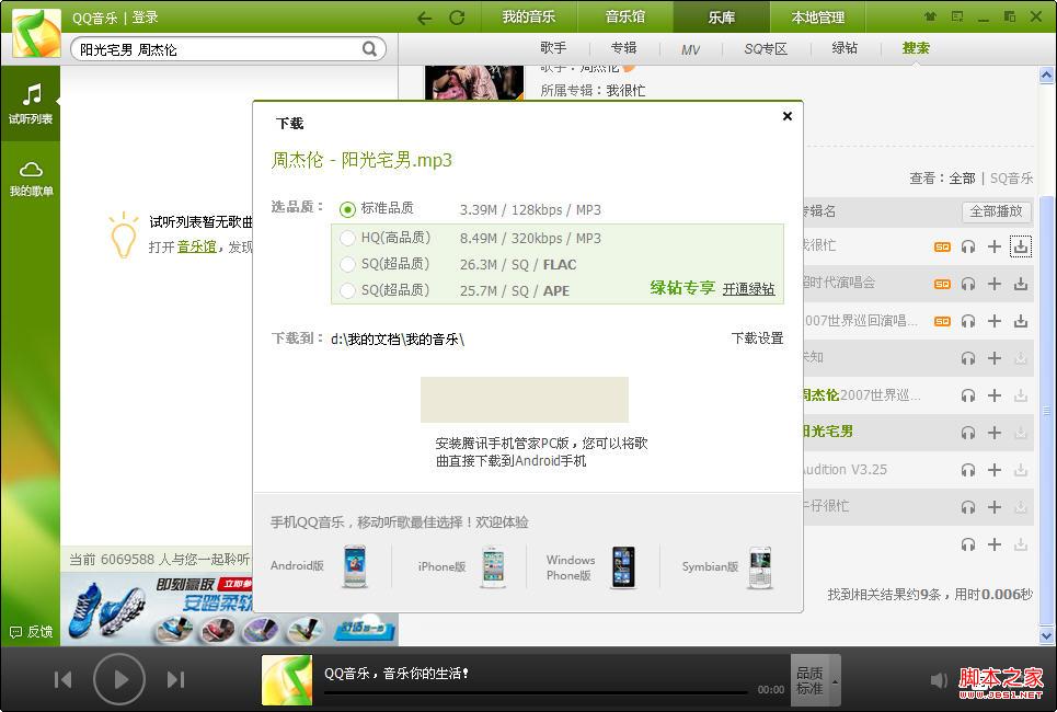 3.出现下载页面,根据自己的需要设置各个选项下载你所需要的音乐。