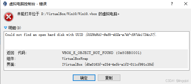 从报错描述上来看应该是对应UUID无法识别导致的,UUID是某虚拟机首次运行时,自动生成的唯一标识符,但由于文件迁移,导致以前的UUID无法使用了。
