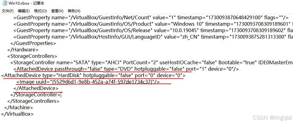 用记事本打开虚拟机存储文件夹里面的*.vbox文件, 如Win10.vbox,然后找到报错信息里的uuid字段。如下图