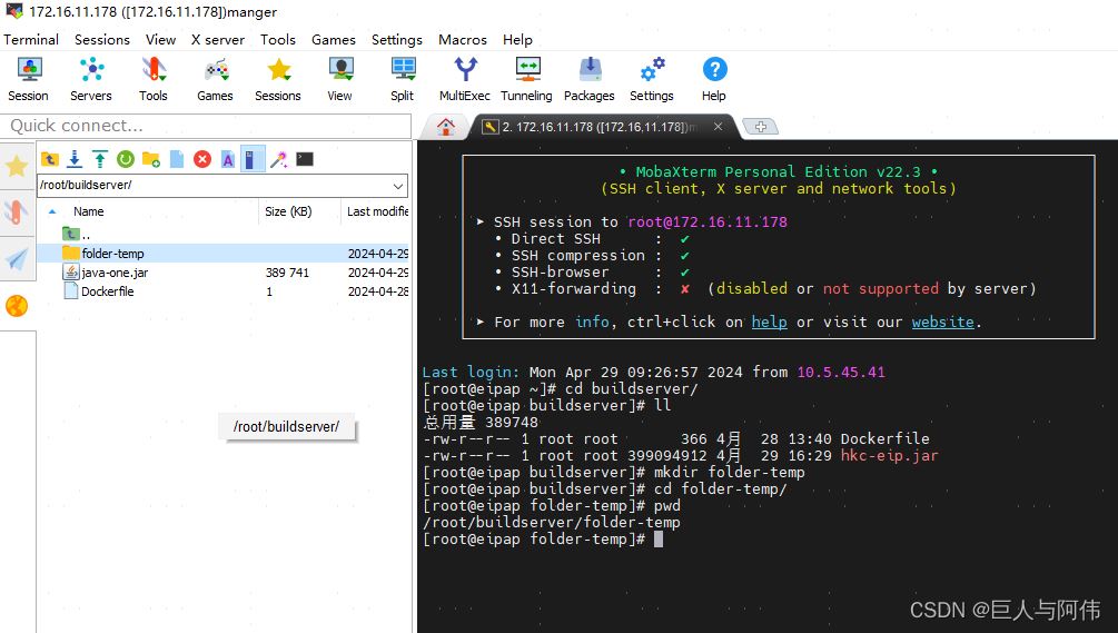 # 新建文件夹 mkdir folder-temp cd /root/buildserver/folder-temp pwd