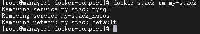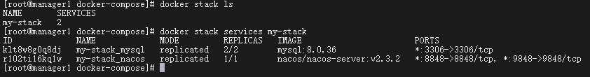 [root@manager1 /]# docker stack ls [root@manager1 /]# docker stack services my-stack