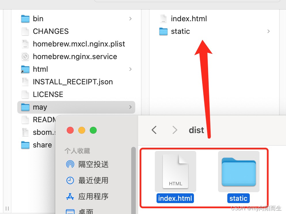 在上面的目录下新建一个文件夹may(自己设置),用来存档dist