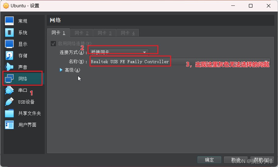 (2) 检查网络设置:在VirtualBox的网络设置中,尝试将连接方式由”桥接网卡”改为”内部网络”。虽然这样会导致虚拟机与外部网络断开连接,但可以作为一个临时解决方案来验证是否是网络设置问题。