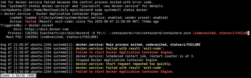在 Ubuntu 系统中安装 Docker 后,有部分用户在启动 Docker 服务时遇到如下报错: Failed to start Docker Application Container Engine,本文将详细解释该问题的原因,并提供完整的修复方案,需要的朋友可以参考下