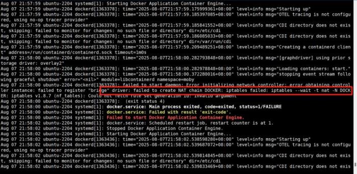 Ubuntu系统下Docker启动失败(iptables/nf_tables)的问题排查与修复方法