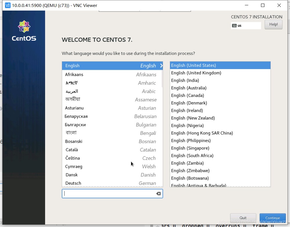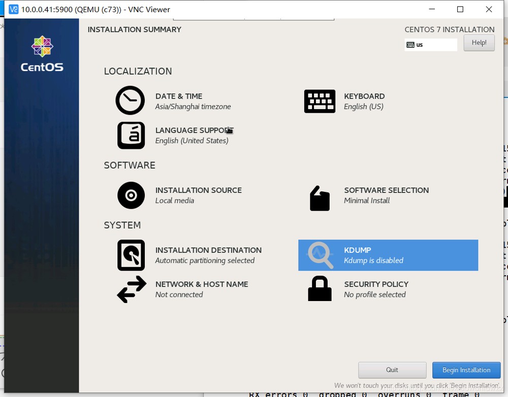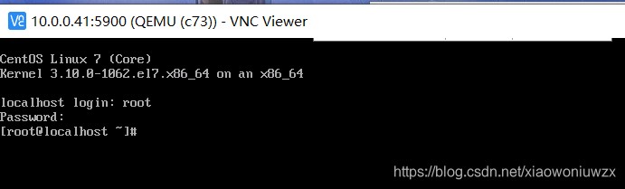 [root@ c7-41 opt]# yum -y install virt-install [root@ c7-41 opt]# virt-install --virt-type=kvm --name=c73 --vcpus=1 -r 1024 --cdrom=/opt/CentOS-7-x86_64-Minimal-1810.iso --network network=default --graphics vnc,listen=0.0.0.0 --noautoconsole --os-type=linux --os-variant=rhel7 --disk path=/opt/c73.qcow2,size=6,format=qcow2 ##默认连接端口是从5900开始的 [root@ c7-41 opt]# virsh list --all Id Name State ---------------------------------------------------- 1 c73 running [root@ c7-41 opt]# netstat -lntup | grep 5900 tcp 0 0 0.0.0.0:5900 0.0.0.0:* LISTEN 3032/qemu-kvm