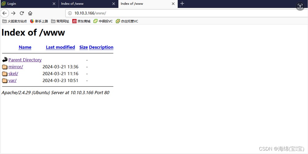 root@yumdailiubuntu:/data/www# vim /etc/apache2/sites-available/000-default.conf <VirtualHost *:80> ServerAdmin webmaster@localhost DocumentRoot /data <Directory /data> Options Indexes FollowSymLinks AllowOverride None Order allow,deny allow from all Require all granted </Directory> ErrorLog ${APACHE_LOG_DIR}/error.log CustomLog ${APACHE_LOG_DIR}/access.log combined </VirtualHost> root@yumdailiubuntu:/data/www# systemctl restart apache2 root@yumdailiubuntu:/data/www# systemctl status apache2.service ● apache2.service - The Apache HTTP Server Loaded: loaded (/lib/systemd/system/apache2.service; enabled; vendor preset: enabled) Drop-In: /lib/systemd/system/apache2.service.d └─apache2-systemd.conf Active: active (running) since Fri 2024-03-22 11:11:08 CST; 1min 24s ago Process: 24640 ExecStop=/usr/sbin/apachectl stop (code=exited, status=1/FAILURE) Process: 24807 ExecStart=/usr/sbin/apachectl start (code=exited, status=0/SUCCESS) Main PID: 24819 (apache2) Tasks: 55 (limit: 4915) CGroup: /system.slice/apache2.service ├─24819 /usr/sbin/apache2 -k start ├─24820 /usr/sbin/apache2 -k start └─24821 /usr/sbin/apache2 -k start Mar 22 11:11:08 yumdailiubuntu systemd[1]: Starting The Apache HTTP Server... Mar 22 11:11:08 yumdailiubuntu systemd[1]: Started The Apache HTTP Server. #关闭防火墙 root@yumdailiubuntu:/data/www# ufw disable Firewall stopped and disabled on system startup