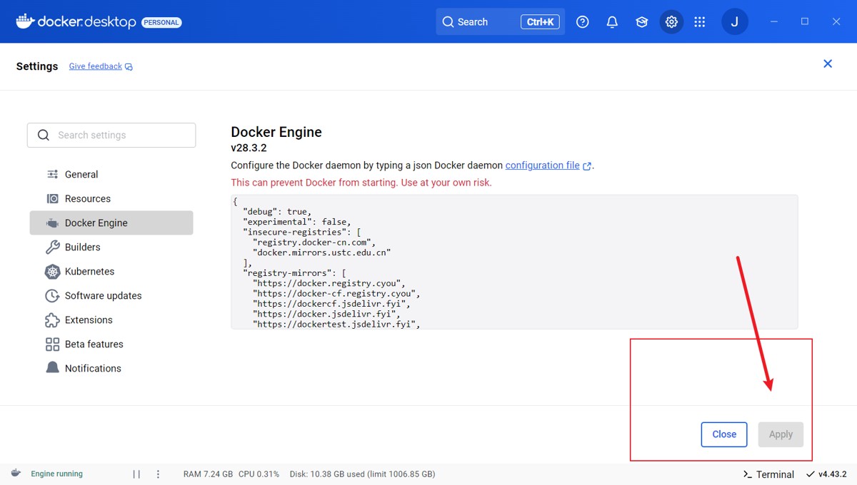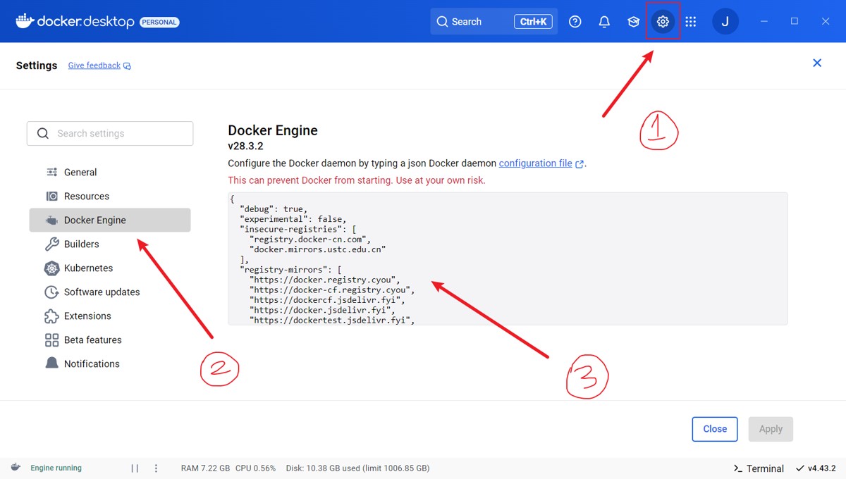 { "debug": true, "experimental": false, "insecure-registries": [ "registry.docker-cn.com", "docker.mirrors.ustc.edu.cn" ], "registry-mirrors": [ "https://docker.registry.cyou", "https://docker-cf.registry.cyou", "https://dockercf.jsdelivr.fyi", "https://docker.jsdelivr.fyi", "https://dockertest.jsdelivr.fyi", "https://mirror.aliyuncs.com", "https://dockerproxy.com", "https://mirror.baidubce.com", "https://docker.m.daocloud.io", "https://docker.nju.edu.cn", "https://docker.mirrors.sjtug.sjtu.edu.cn", "https://docker.mirrors.ustc.edu.cn", "https://mirror.iscas.ac.cn", "https://docker.rainbond.cc", "https://do.nark.eu.org", "https://dc.j8.work", "https://dockerproxy.com", "https://gst6rzl9.mirror.aliyuncs.com", "https://registry.docker-cn.com", "https://hub-mirror.c.163.com", "http://mirrors.ustc.edu.cn/", "https://mirrors.tuna.tsinghua.edu.cn/", "http://mirrors.sohu.com/" ] }