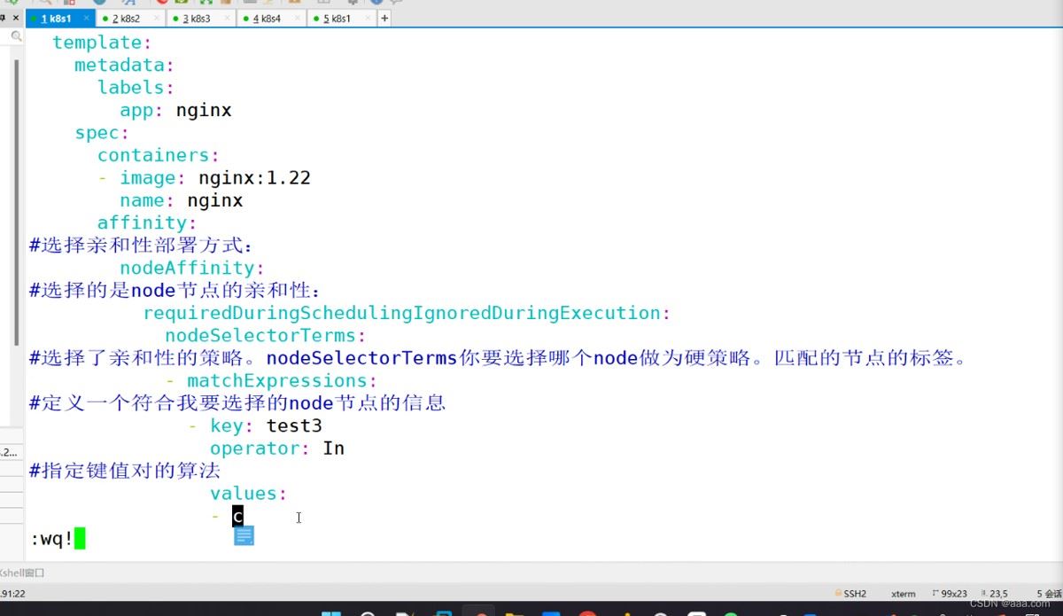 选择了亲和性nodeSelectorsTerms你要选择哪个nodez作为node为硬策略,匹配的节点标签