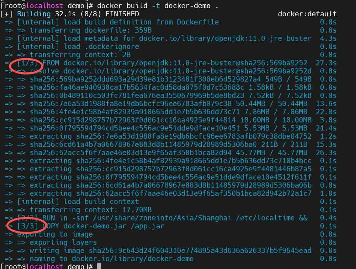 给一个jar包和dockefile上传demo目录,就可以用如下的命令进行打包。