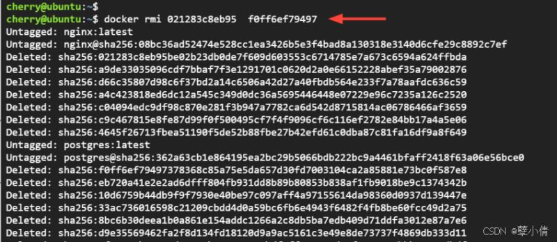 。如果要同时删除多个镜像,可以一次传入多个 ID: