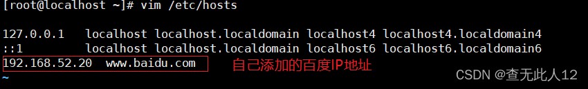/etc/nsswitch.conf文件中files在dns前 查看百度的IP地址会发现百度的IP地址为自己随机设置的IP