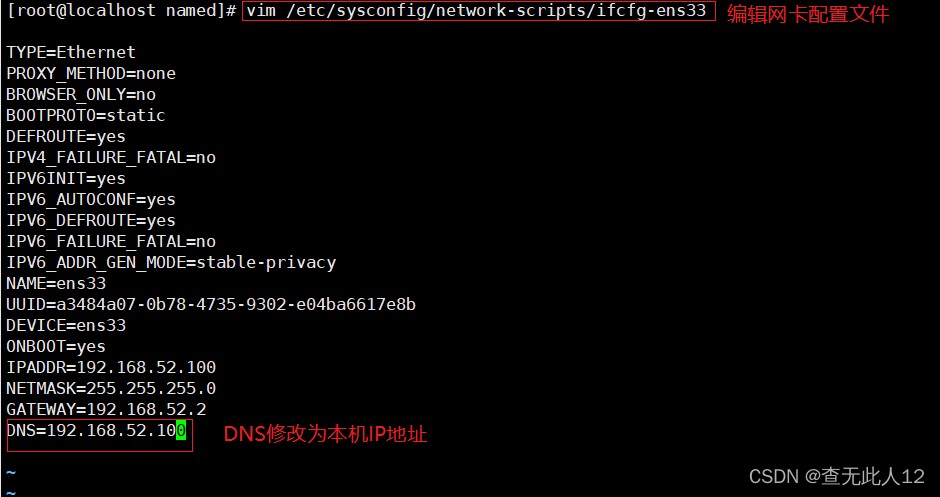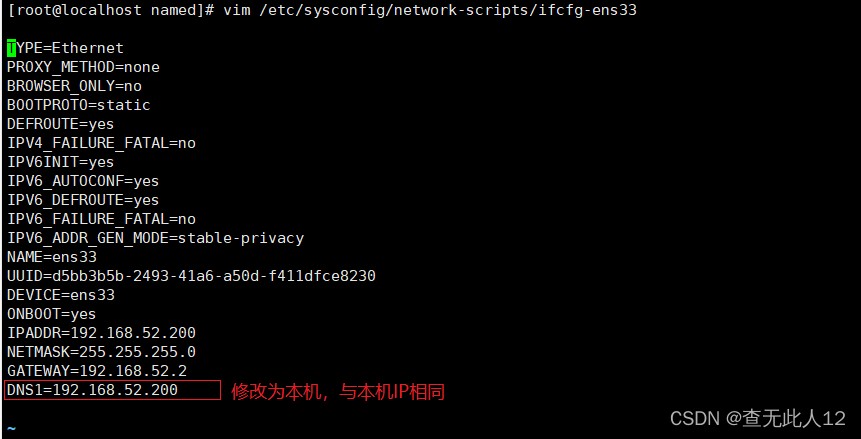 编辑网卡配置文件,将DNS修改为本机