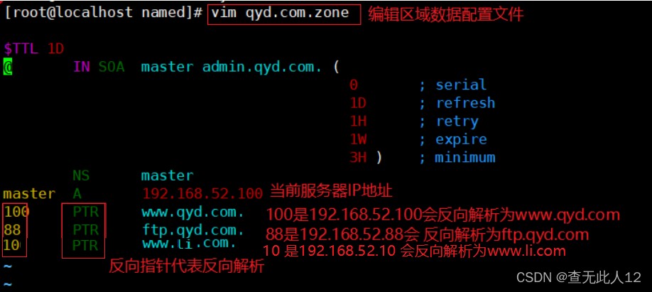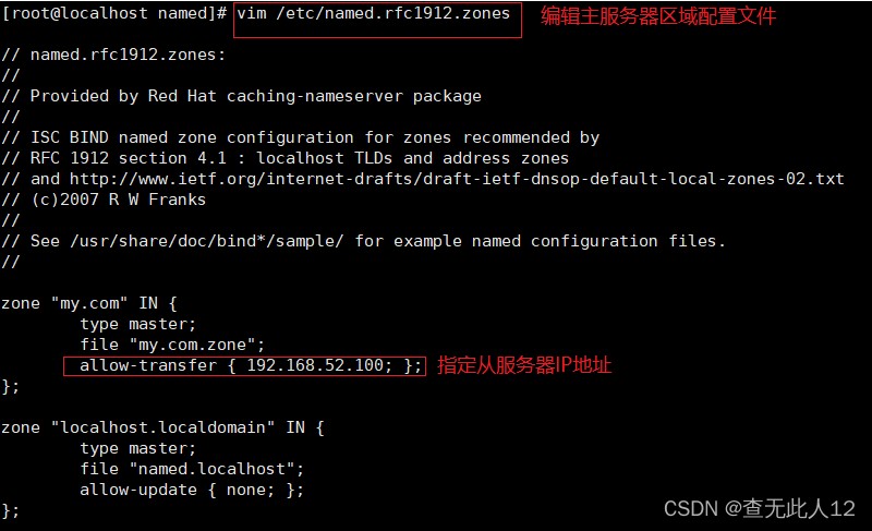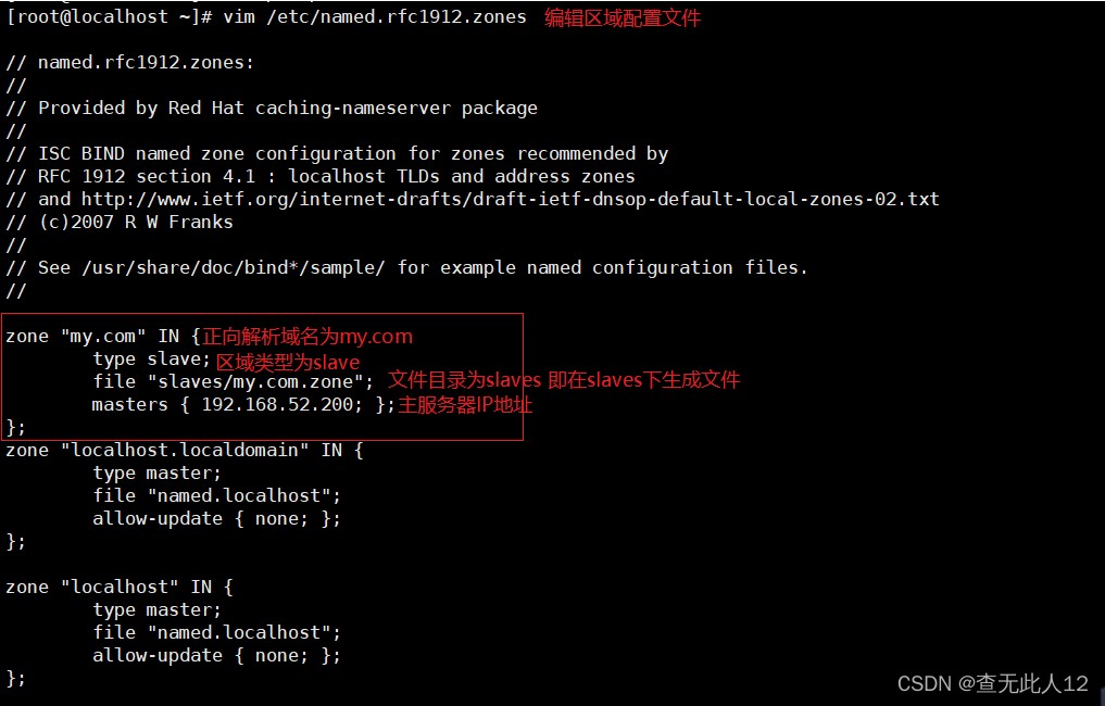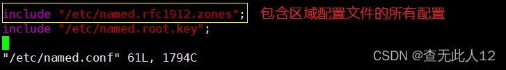 - 编辑区域配置文件named.rfc1912.zones