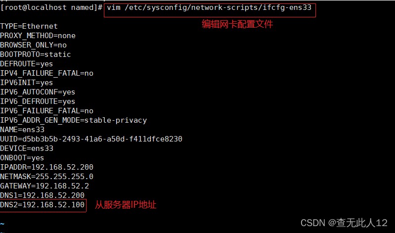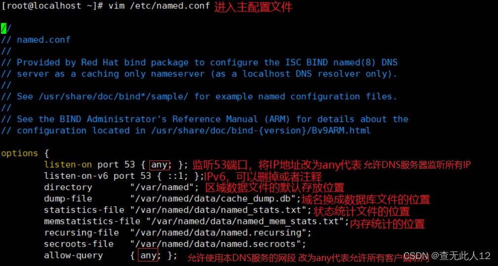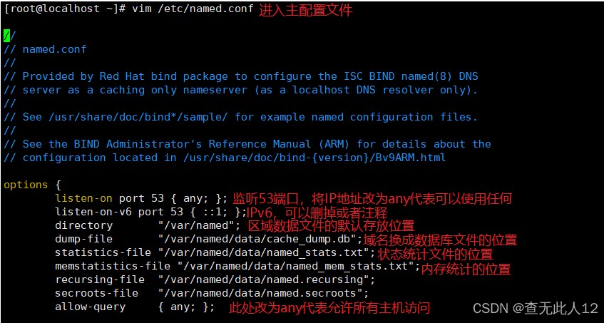 - 编辑主配置文件named.conf