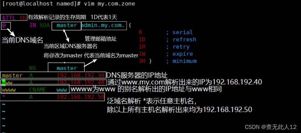 编辑正向解析区域数据文件my.com.zone