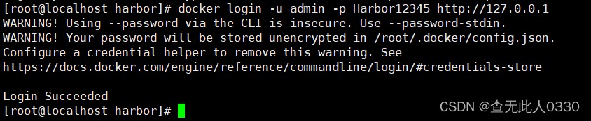 docker login http://127.0.0.1 或者 docker login -u admin -p Harbor12345 http://127.0.0.1