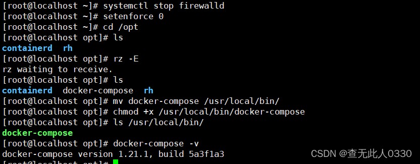 curl -L https://github.com/docker/compose/releases/download/1.21.1/docker-compose-`uname -s`-`uname -m` -o /usr/local/bin/docker-compose #下载安装包,我这里直接传入下载的安装包 chmod +x /usr/local/bin/docker-compose docker-compose -v
