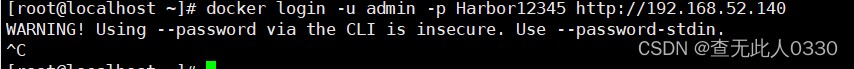 docker login -u admin -p Harbor12345 http://192.168.52.140