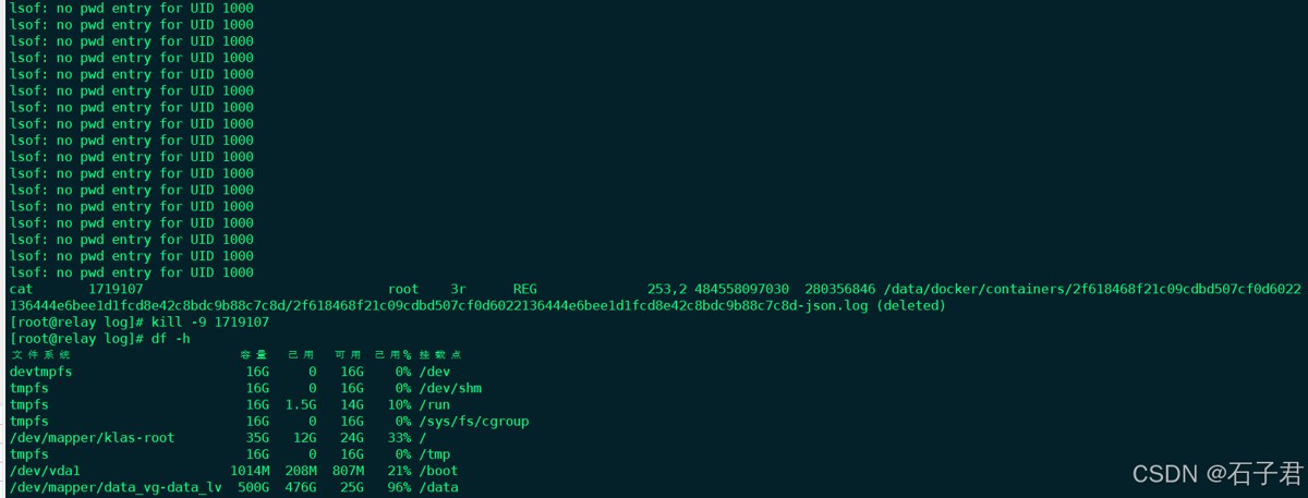 解决linux系统删除文件后,可用率没变,磁盘还是满的问题