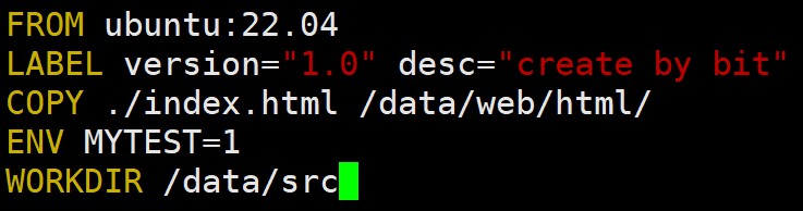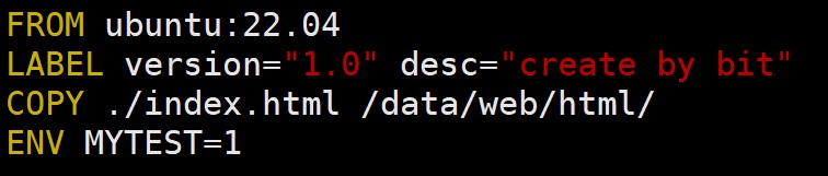 FROM ubuntu:22.04 as buildstage1 LABEL version="1.0" desc="create by bit"