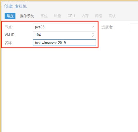 - 节点:根据实际情况选择,这里选择pve03(因为vmware的虚拟机传输到pve03节点里)