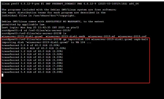 #######本地磁盘 qm importdisk 104 winserver-2019-disk1.qcow2 local --format=qcow2 #######ceph磁盘 qm importdisk 104 winserver-2019-disk1.qcow2 ceph-bxlt