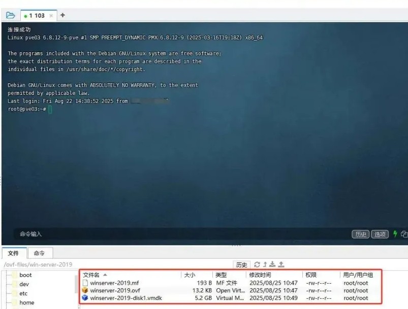 (3)将windows中的ovf开放格式的虚拟机文件(仅需上传vmdk文件)传输到linux系统中(pve节点里)