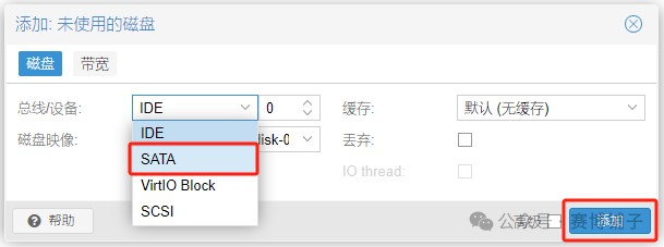 将“总线/设备”设置为“SATA或者IDE”(磁盘模式要选对,否则后面无法启动系统)