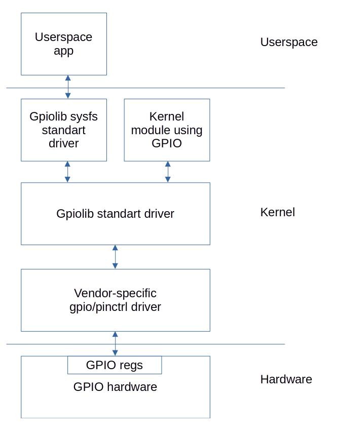 GPIO 引脚必须由内核控制(例如,来自邻近的驱动程序),也就是说,内核模式也需要一个 API。