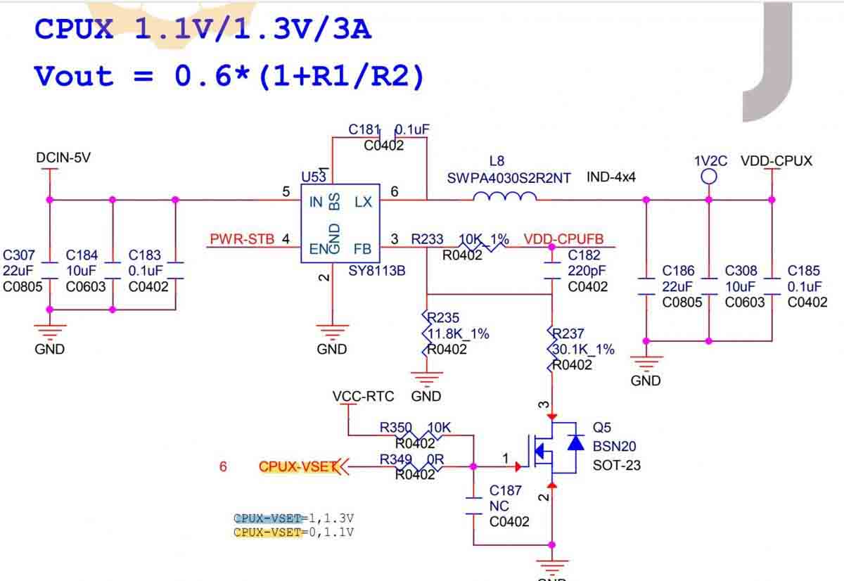 我们看到 PL6 引脚确实连接到名为 CPUX-VSET 的链: