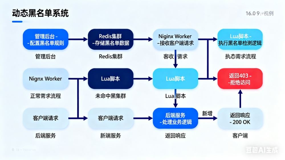 以下是对Nginx+Lua动态加载黑名单的完整技术实现方案,包含核心原理、代码实现和性能优化策略: