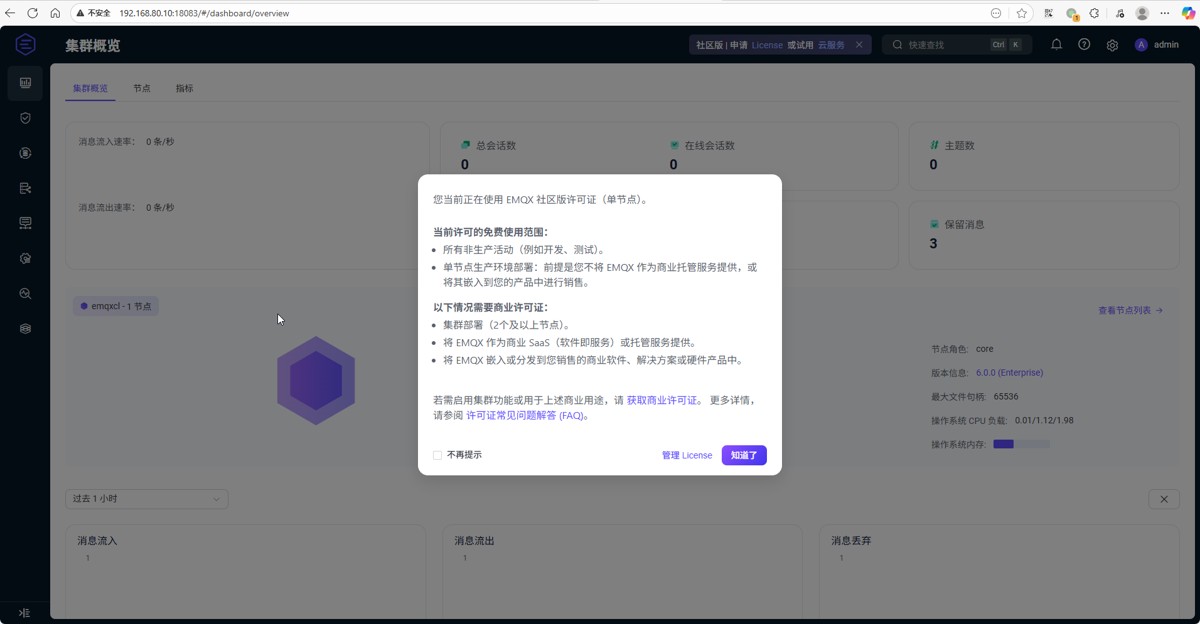 cd /opt # 修改所属者 sudo chown -R $USER:$USER /opt/emqx docker compose up -d emqx