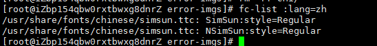 这里我们可直接使用fc-list :lang=zh命令查看是否安装了中文字体。