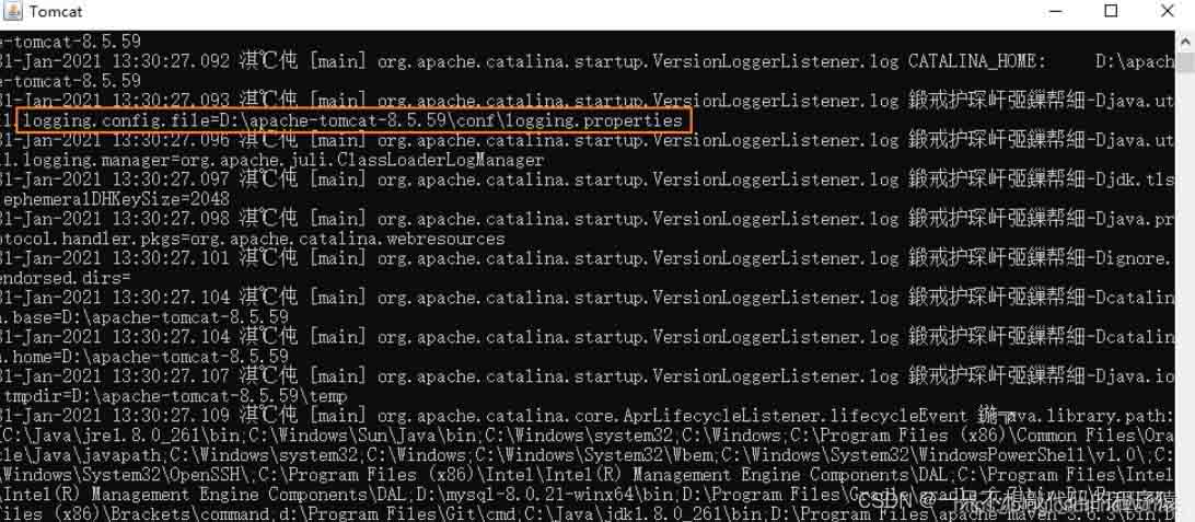 由于使用startup.bat启动Tomcat时,它会读取catalina.bat的代码并start一个新窗口运行, 但tomcat打开的cmd默认编码不是utf-8,从而导致乱码。
