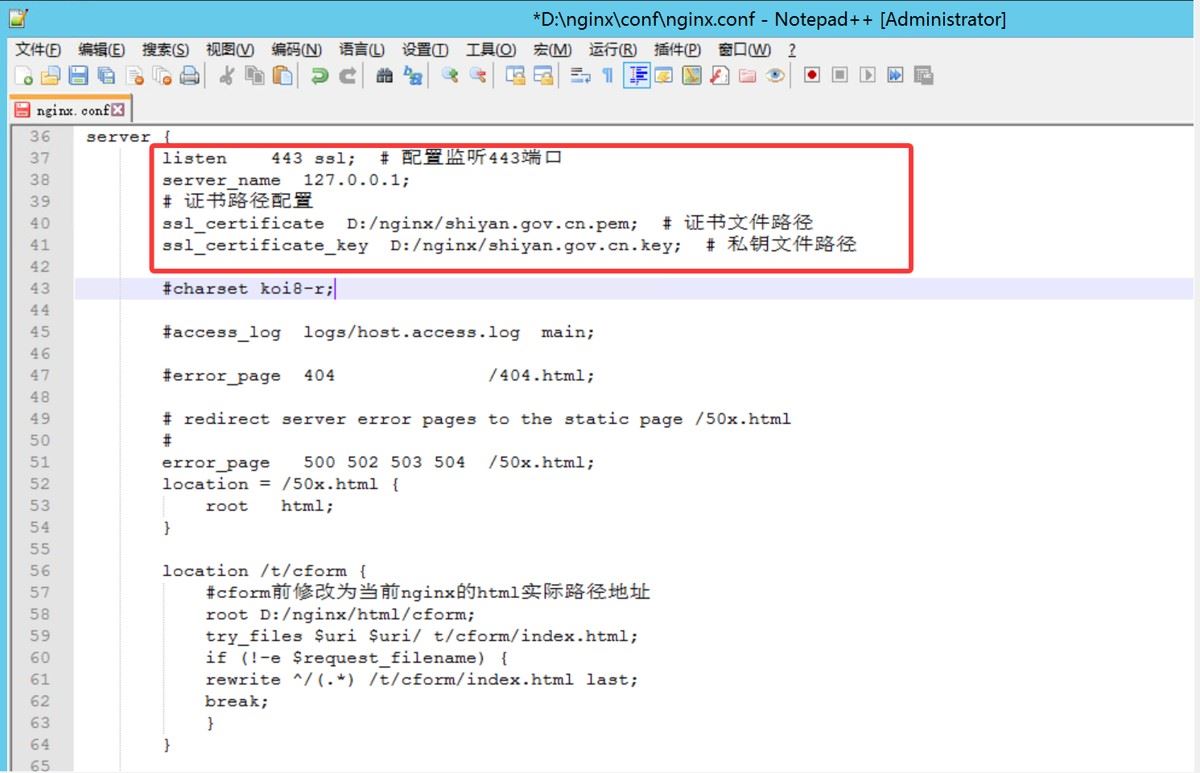 监听443端口,配置证书路径,重启nginx