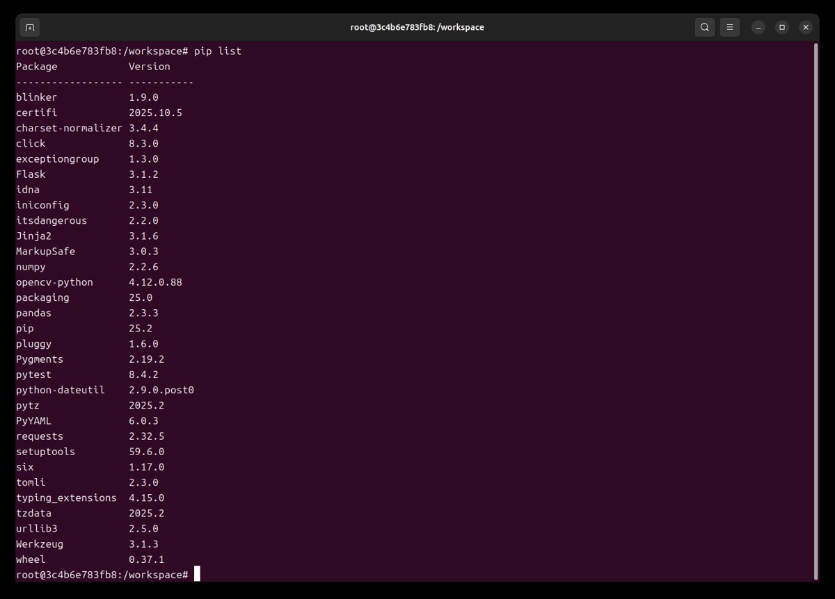 查看容器中是否包含Dockerfile中指定的那些pip包: