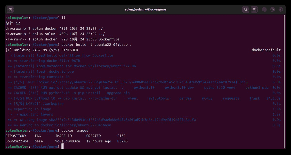 docker build -t <docker name>:<tag> . # for example docker build -t ubuntu22-04:base . docker build -t first_docker:v1.0.0 .