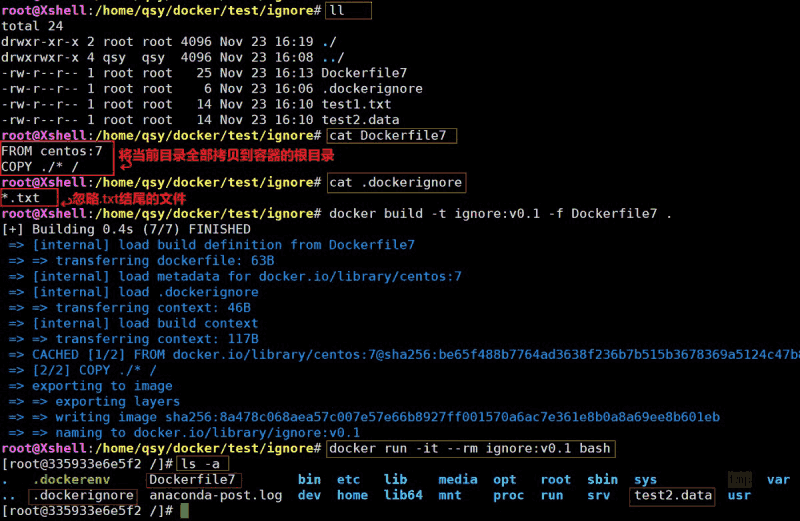 很多时候我们会将当前目录(构建上下文)中的所有文件拷贝给docker容器。但很多时候,我们的项目中包含一些不需要被打进镜像的文件,这些文件不仅会增加镜像大小,延长构建时间,还可能带来安全风险。这时候.dockerignore就该上场了。