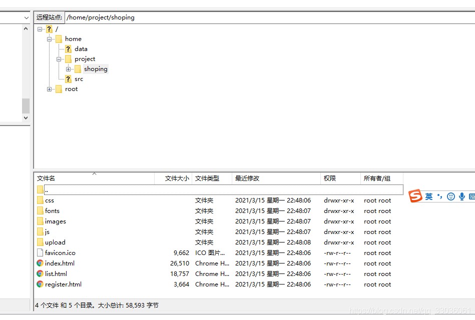 如 /home/project/shopping, 项目包含js,css和html等