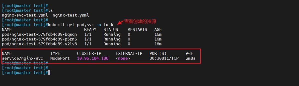 kubectl apply -f nginx-svc-test.yaml #创建资源对象