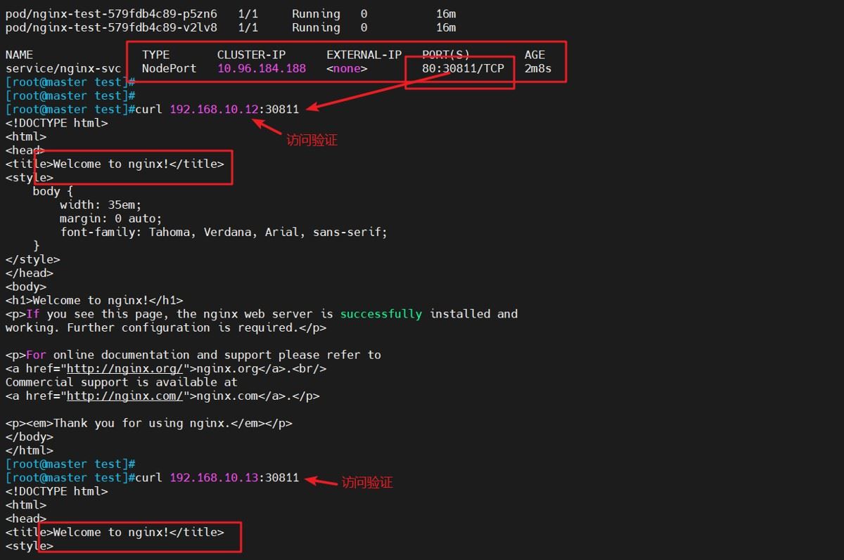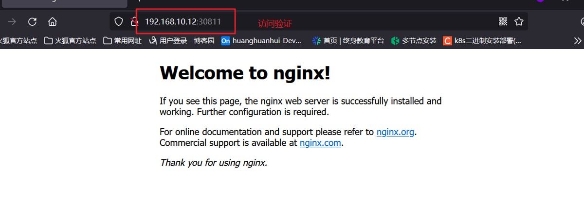 curl 192.168.10.12:30811 curl 192.168.10.13:30811 #验证访问 #或者在浏览器输入nodeIP:nodePort即可访问