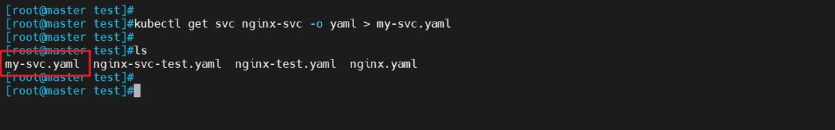 kubectl get svc nginx-svc -o yaml > my-svc.yaml #输出到my-svc.yaml文件中