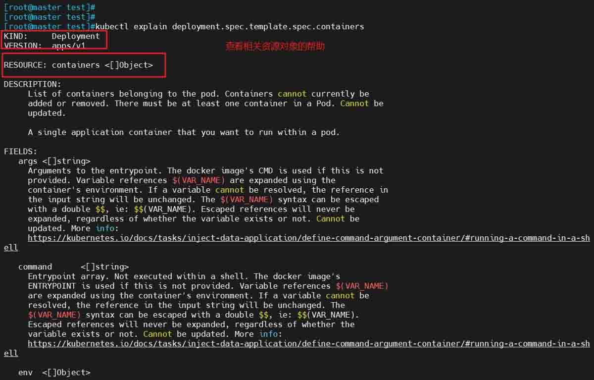 kubectl explain deployment.spec.template.spec.containers #查看相关资源对象的帮助信息 kubectl explain pods.spec.containers #查看相关资源对象的帮助信息