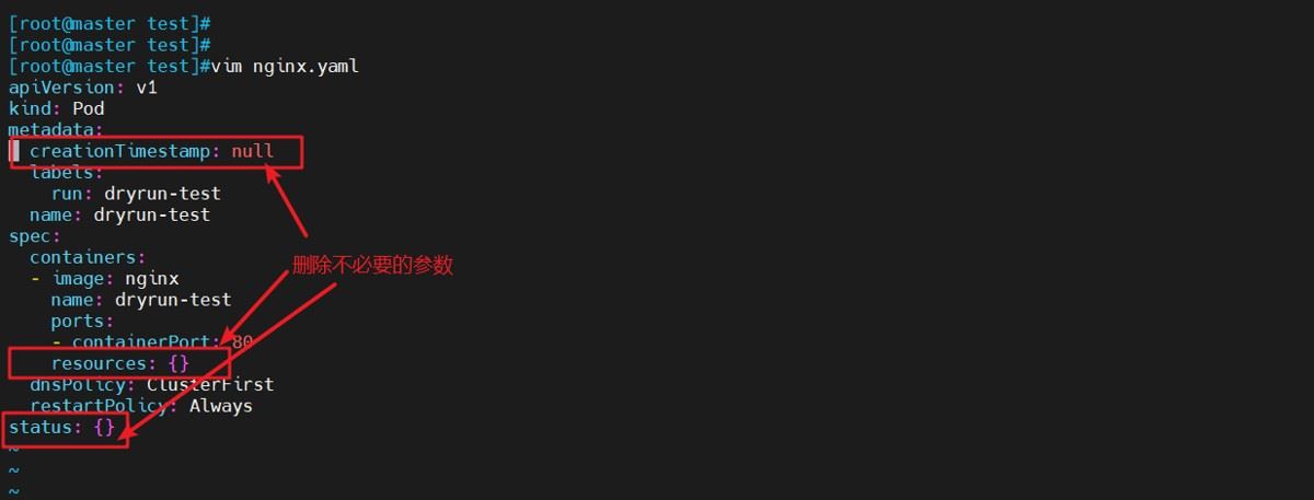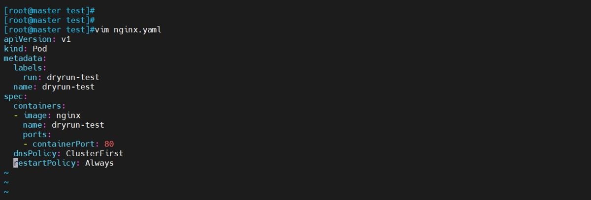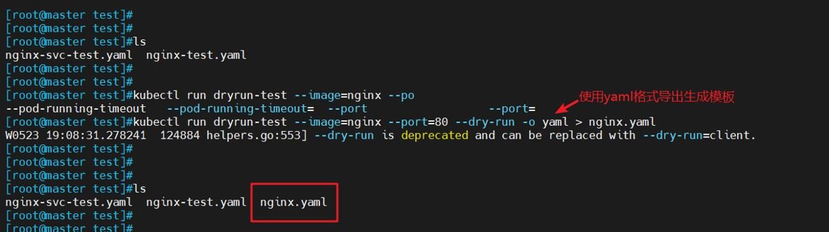 kubectl run dryrun-test --image=nginx --port=80 --dry-run -o yaml > nginx.yaml #使用yaml格式导出生成模板