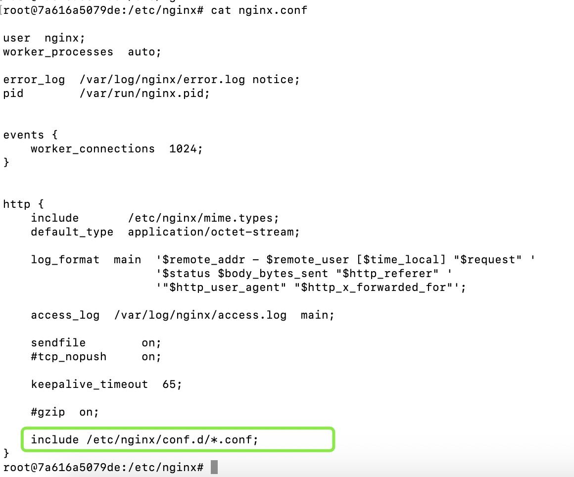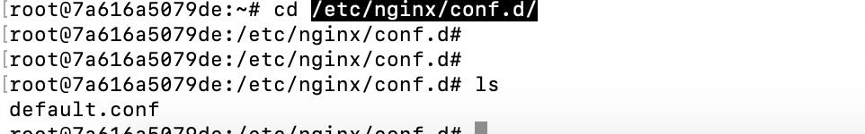 docker restart 容器ID docker ps docker exec -it 7a616a5079de /bin/bash cd /etc/nginx/conf.d cat default.conf
