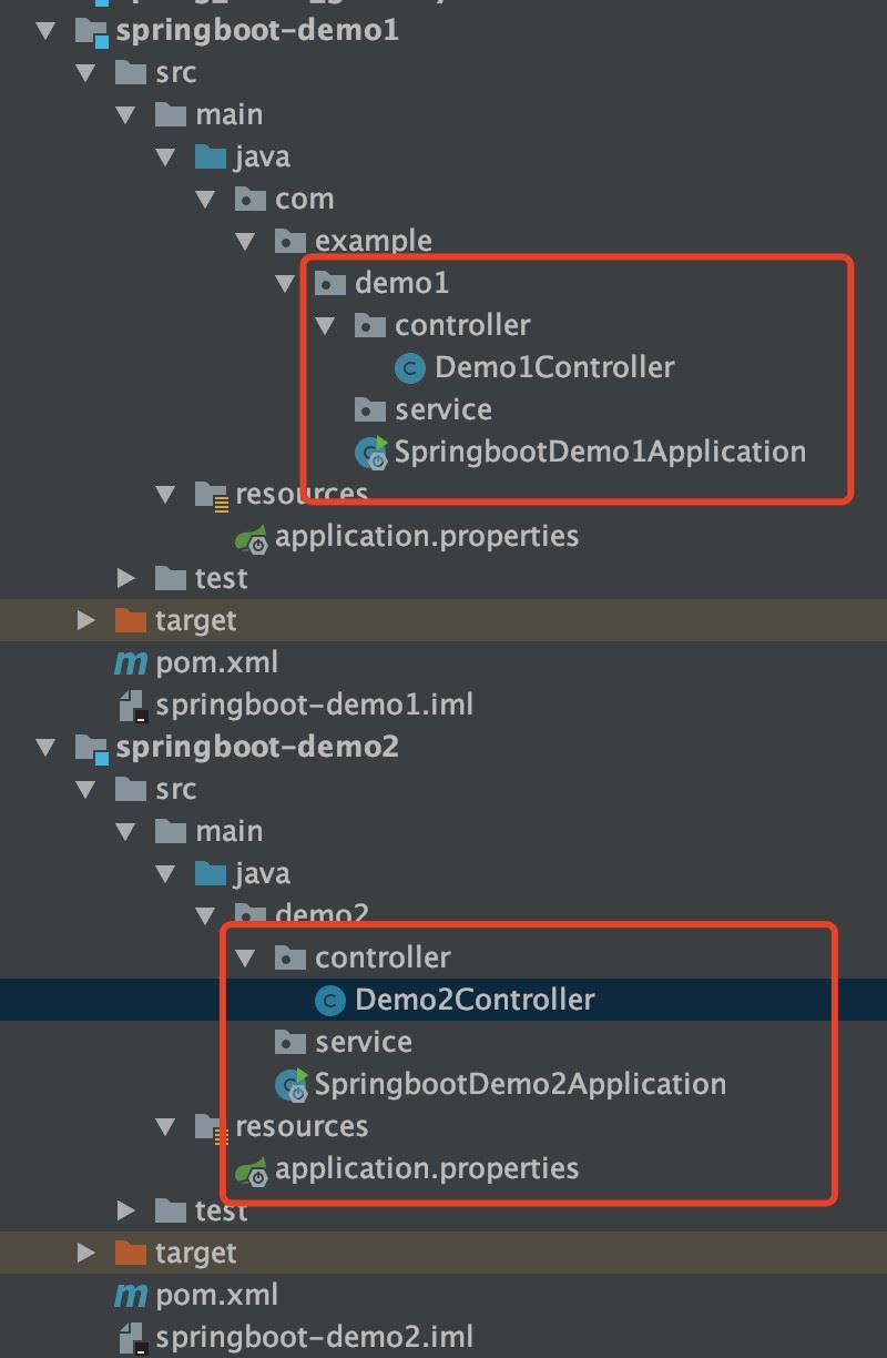 启动要反向代理的微服务,我是在本地启动了两个微服务:demo1,demo2,端口分别为8081,8082。