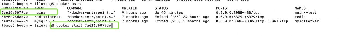 docker ps -a docker start 容器ID